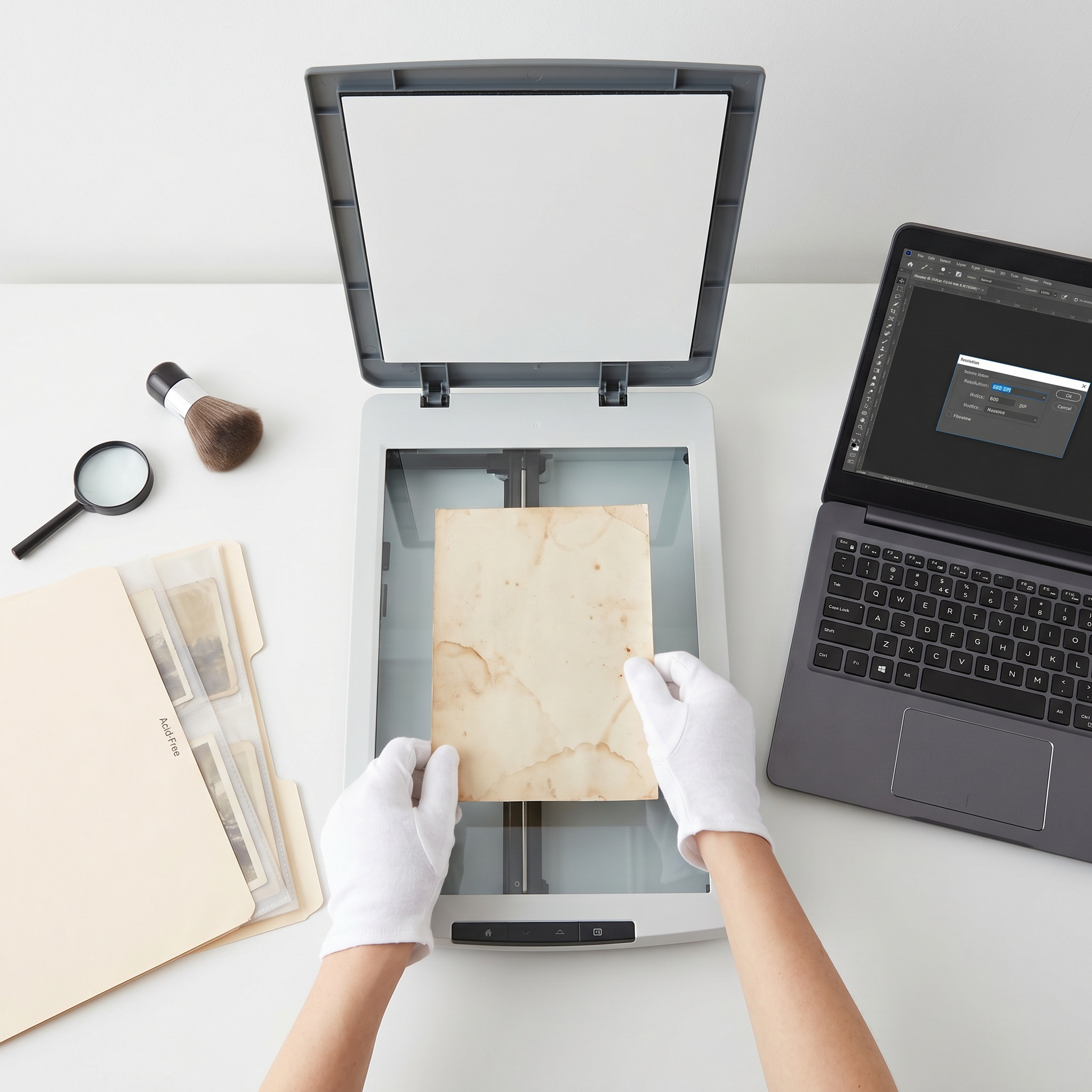 - Clean the scanner glass with a microfiber cloth every few scans — dust becomes permanent dots.