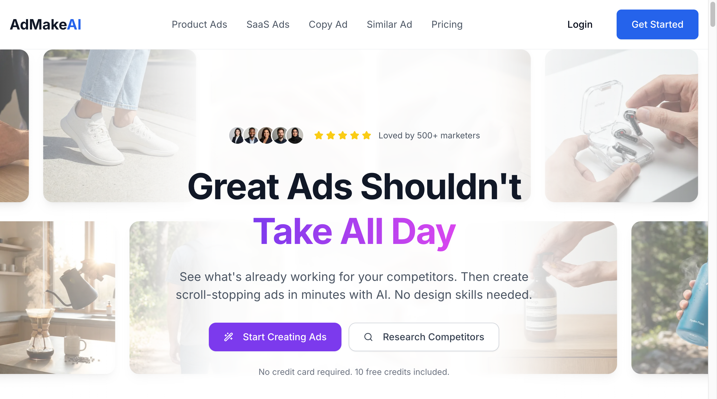 AdMakeAI (admakeai.com) takes a different approach to product photography by focusing specifically on advertising creative. Upload your product photo and AdMakeAI generates complete ad-ready visuals optimized for Facebook, Instagram, TikTok, and Google Shopping. The AI understands ad composition principles -- placing products with the right visual hierarchy, adding contextual lifestyle elements, and creating variations sized for different platforms automatically.